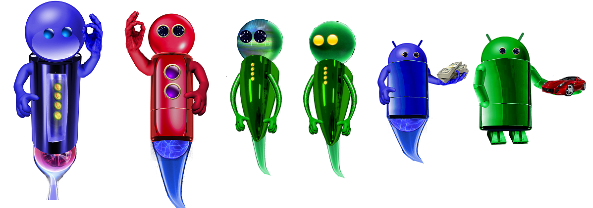 Every now and then I get paid to have fun. A client wanted some ‘bots’ for his PowerPoint project, so I was able to design ‘bots’. I wanted to avoid ‘feet’ since we’re in the 21st Century, but the client didn’t seem to understand plasma jets. In the time-honored tradition of animated robots, all of my bots were created from ordinary household objects…