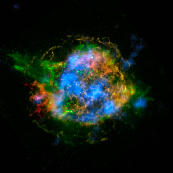 “The new view shows a more complete picture of Cassiopeia A, the remains of a star that blew up in a supernova event whose light reached Earth about 350 years ago, when it could have appeared to observers as a star that suddenly brightened. The remnant is located 11,000 light-years away from Earth.” http://www.nustar.caltech.edu/image/nustar140219a