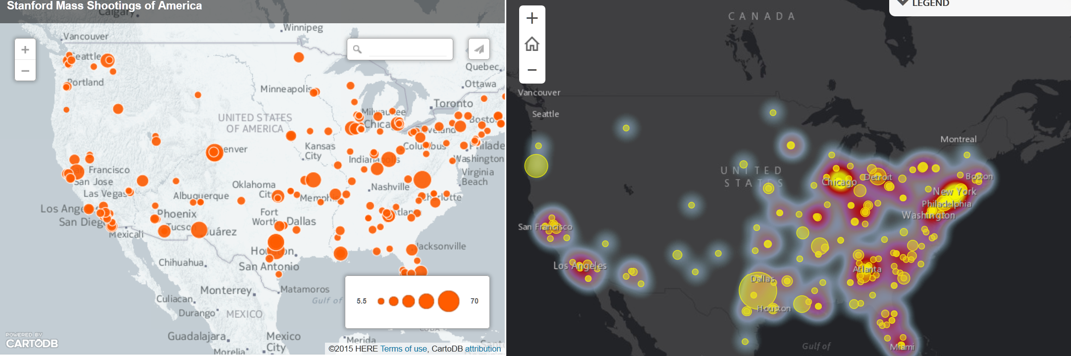 Left hand map: https://library.stanford.edu/projects/mass-shootings-america