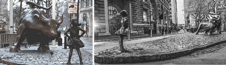 My new heroine; The Fearless Girl standing before the Wall Street Bull