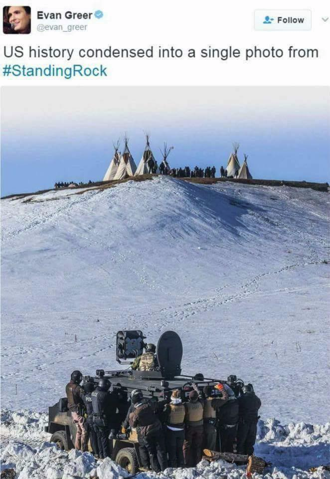 To hell with the First People. Our country has written Treaties with First Peoples for over two centuries; breaking those treaties before the ink had dried. What’s one more Treaty? The pipeline going under the Missouri River is too dangerous to be located near the State Capitol; it’s just fine near the Standing Rock Sioux tribal lands. There aren’t any Whites to worry about on the Res.