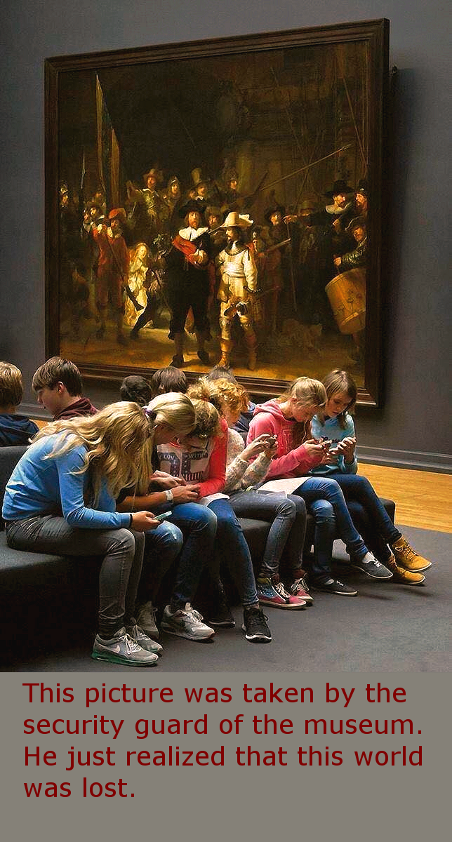 When one is standing before a Rembrandt, one can’t learn about the painting by looking at a device. One learns about Rembrandt by looking at the painting.
