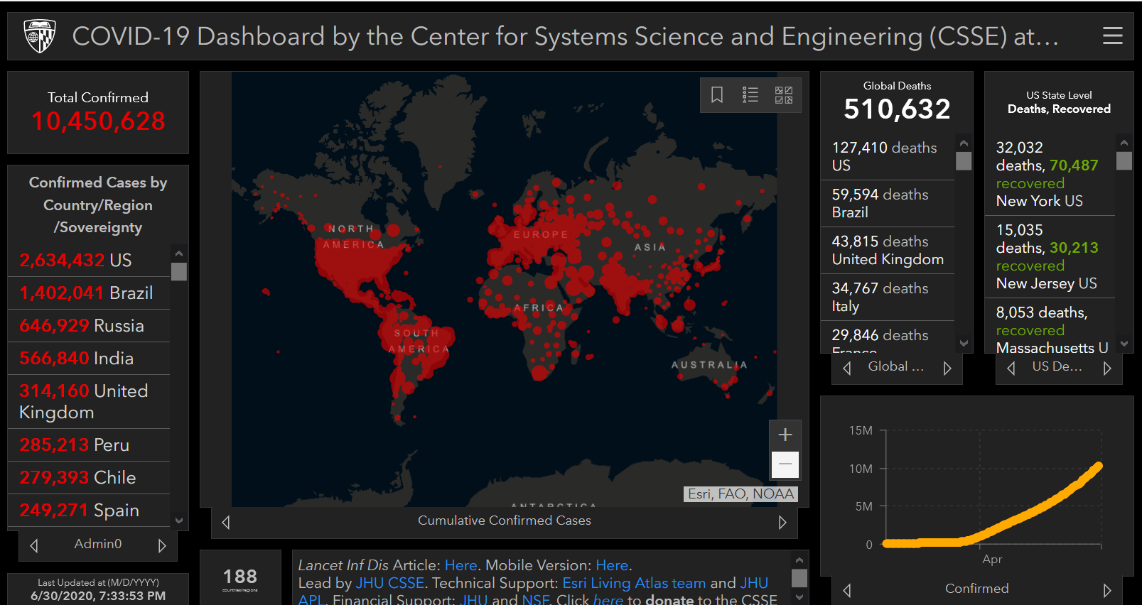 Over 10 million COVID-19 cases, and more than one-half million deaths, worldwide.