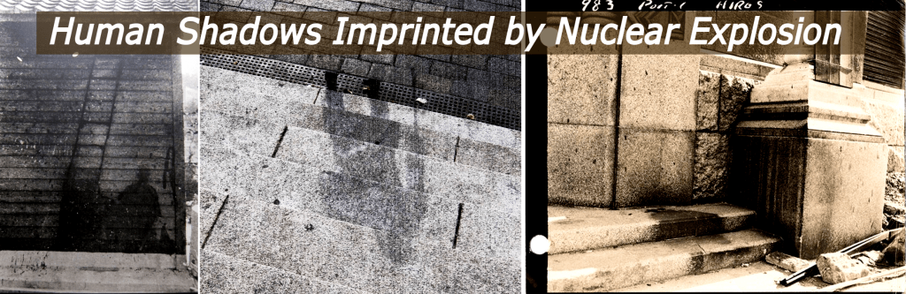 The ‘shadows’ of humans in the images below, aren’t conventional shadows. They are all that remains of human beings blasted by the atomic blasts; permanently etched into adjacent structures.