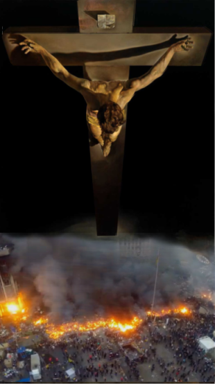 Jesus was tortured through the night and into the following morning. He was then taken to a hill where he was executed.