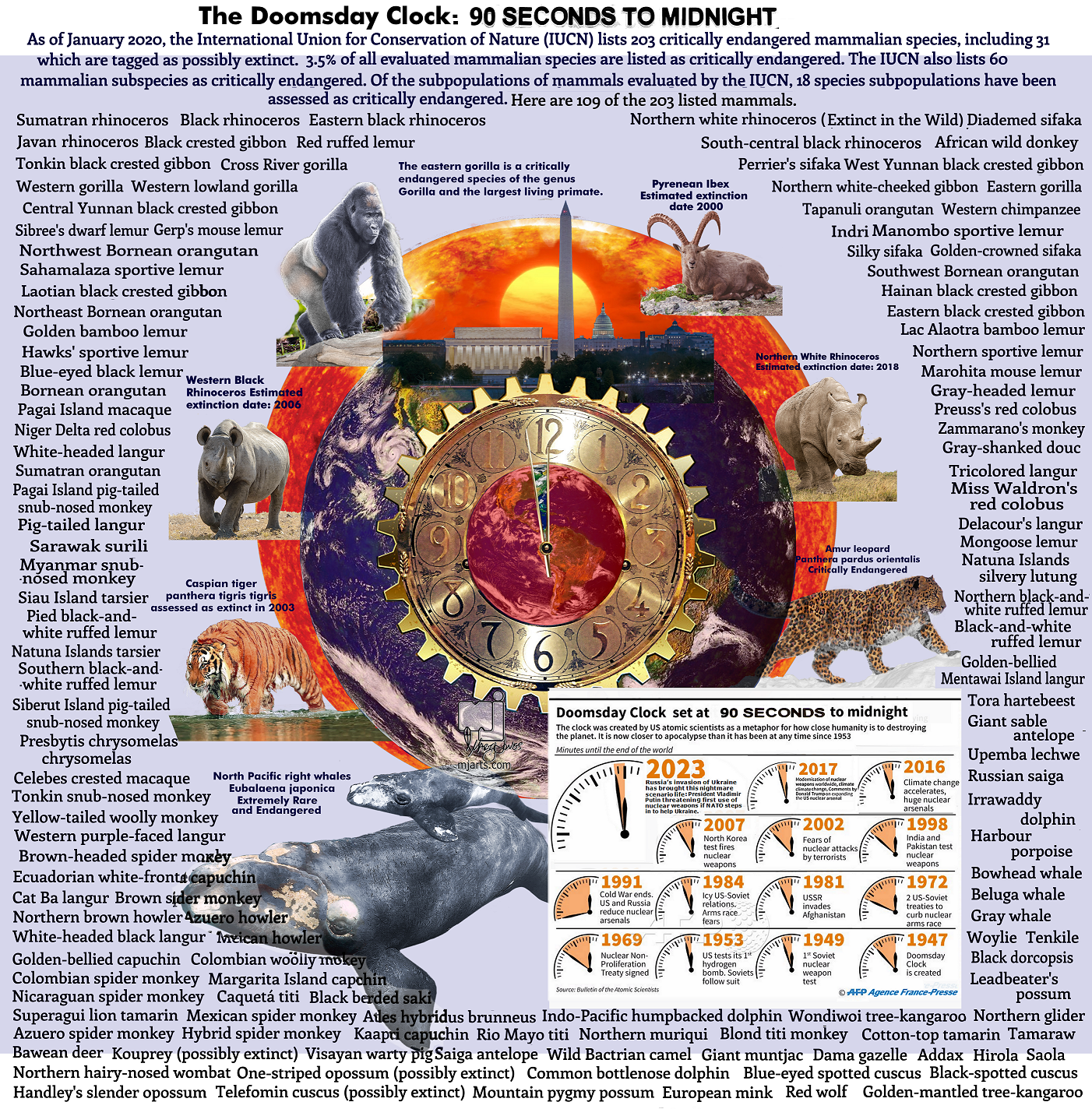 “Humanity is closer than ever to the end of the world.” That was the dire warning this week from the Bulletin of the Atomic Scientists, which, since 1947, has been estimating how close the world is to ending by stating starkly how many “minutes to midnight” remain on its signature Doomsday Clock. The clock on Tuesday was set at 90 seconds to midnight, the closest to midnight it has ever reached, according to the Bulletin, a nonprofit organization and publication.