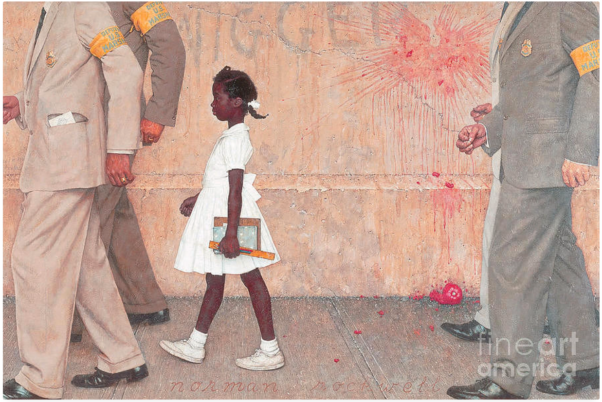 I entered Adulthood during the Civil Rights era. Black people attacked by White [pink—I’m an illustrator] people. Every Day. Ruby Bridges integrated an elementary school—resulting in some of the most disturbing photos I’ve seen. White Adults screaming threats at a six-year-old child, protected by four Officers.